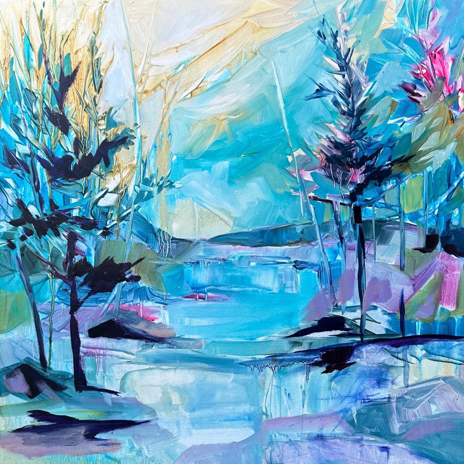 And as always, the movement of trees and the rhythms of nature continue to ground my work. I’ve been experimenting with a fresh use of white on my canvases, letting it carve out light and space in new ways. This exploration will carry me through the fall and winter—an ongoing conversation between stillness and motion, memory and renewal.