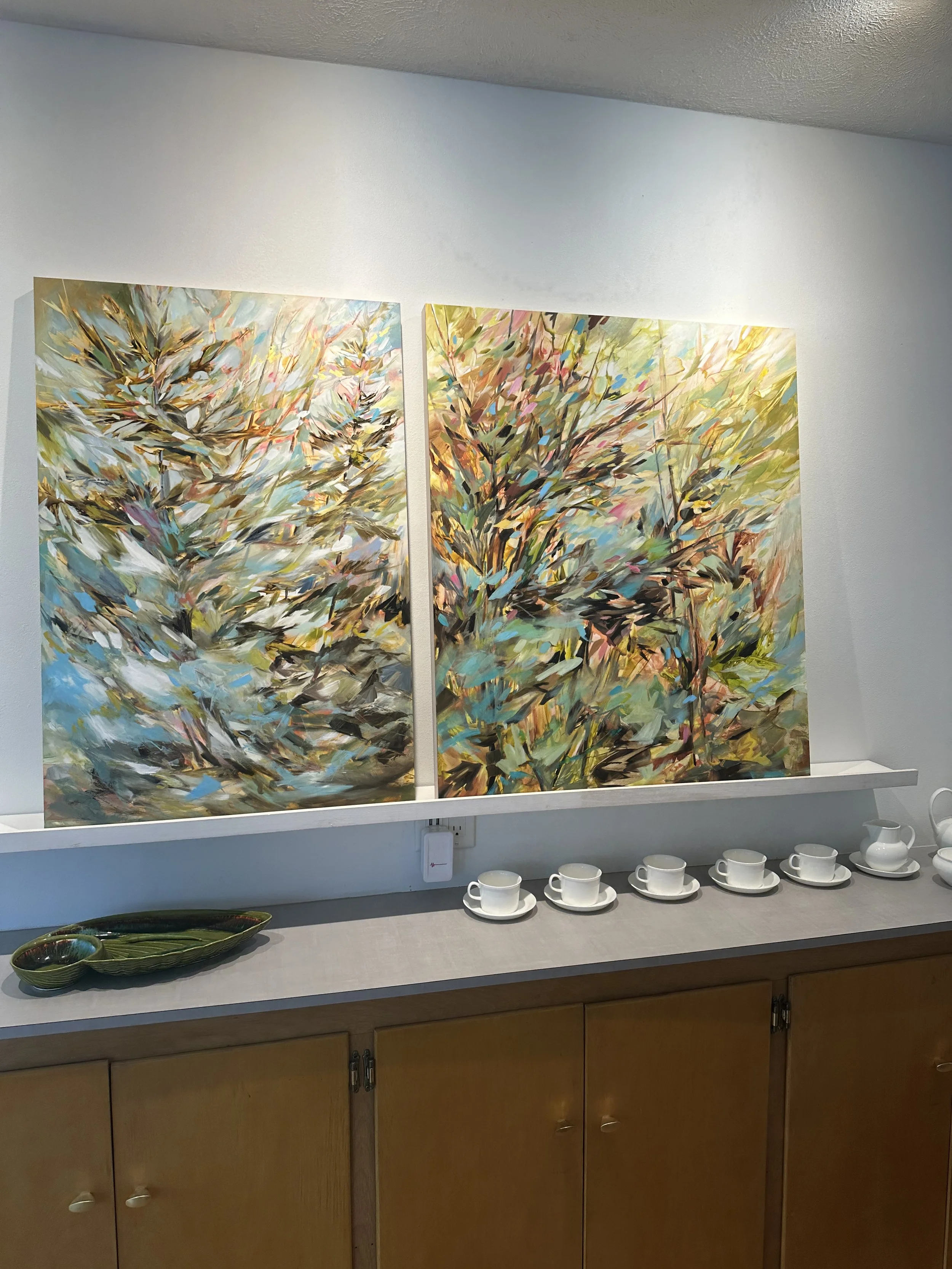 This exhibition brings together finished paintings and works on paper to trace the ebb and flow of an artistic practice. Large-scale paintings anchor the space, while a series of pinned sketchbook pages and studies reveal the thinking, revisions, and quiet decisions that shape each work.